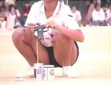 生地のほつれ具合までわかるほどドアップで撮影したブルマと、しゃがみこんでる子の股間を狙ったショットが多いのがこの撮影者さんの特徴。