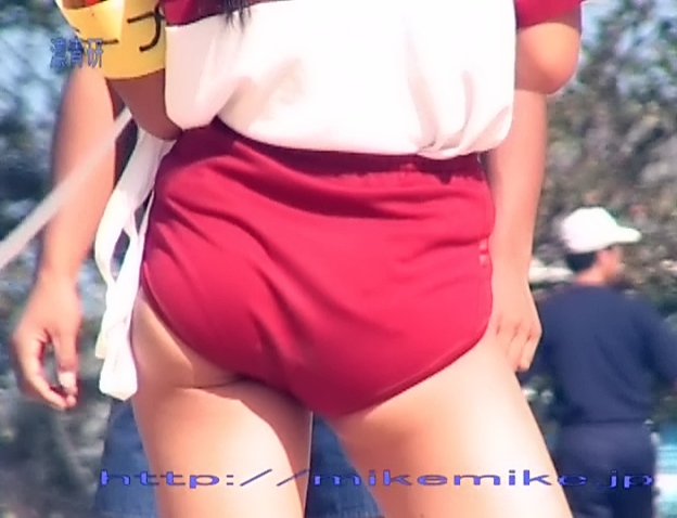 フィット感の強いアシックス製のブルマがデカめのヒップによく食い込んで、どの子を見てもパン線がくっきり。さらには勢いあまって下尻が大きく露出しちゃってる子も。