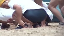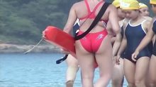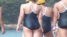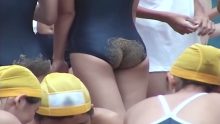 いかにも小学生っぽい小ぶりなヒップですが、プリっとしててい威勢がいいせいか水着から下尻がハミ出しちゃってる子が続出。かわいらしくもエロティックなハミケツが最上級の素晴らしさで、願わくばその尻肉を甘噛みしてテイスティングしたいと思ったほどでした。