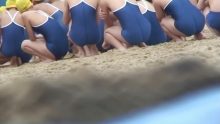 黄色いキャップと紺色スク水という出で立ちのクラスにターゲットを絞って撮影。後ろ姿をとらえたショットが多くお尻で抜くための映像となっています。